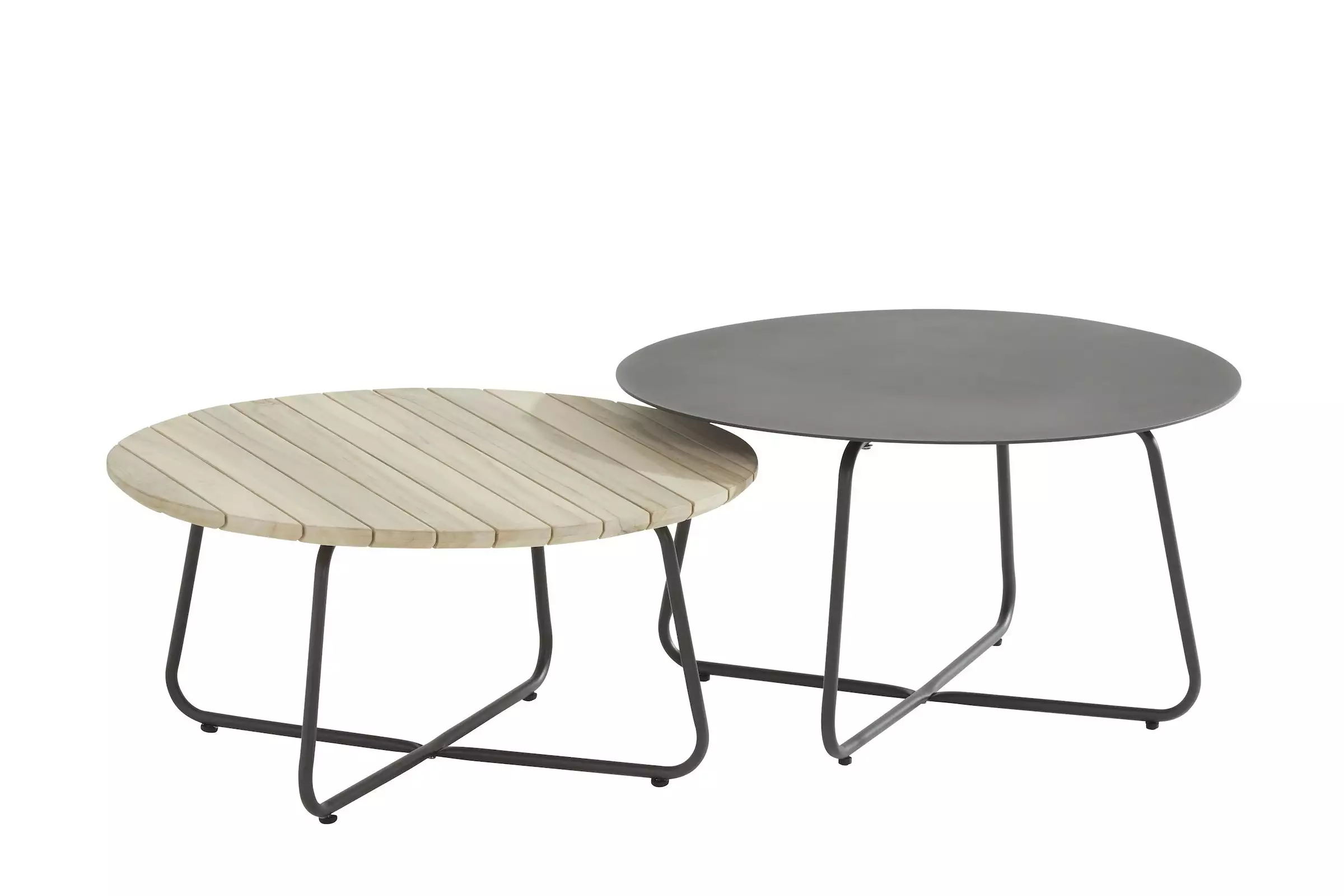Een teak houten blad op een RVS onderstel. Wat een prachtige lounge tuintafel voor bij een buiten loungeset. Deze koffie tafel voor buiten laat zich goed combineren door de mooie materialen en kleur. Alleen, zelfstandig of in een groepje met ander tuin salontafeltjes. Het teakhout heeft een finishing van instant grey. Het RVS onderstel heeft een poedercoating in een mooie kleur antraciet.