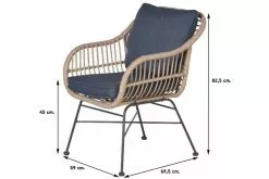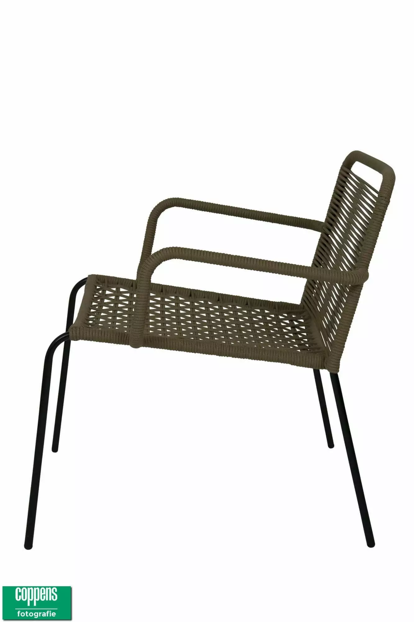 Deze Dover lounge stoel is een mooie hippe relax stoel die gemaakt is van taupe rope (touw). De stoel is heel gemakkelijk op te bergen, omdat hij stapelbaar is. Het frame van de stoel is van staal en is 1.2cm rond. Dit is ook gepoedercoat met antraciet. De stoel kunt u gewoon buiten laten staan aangezien het van weerbestendig touw is gemaakt. Ook heeft de stoel een goed zitcomfort. Deze loungestoel is makkelijk om ergens bij te zetten waardoor u een leuk hoekje kunt creëren.