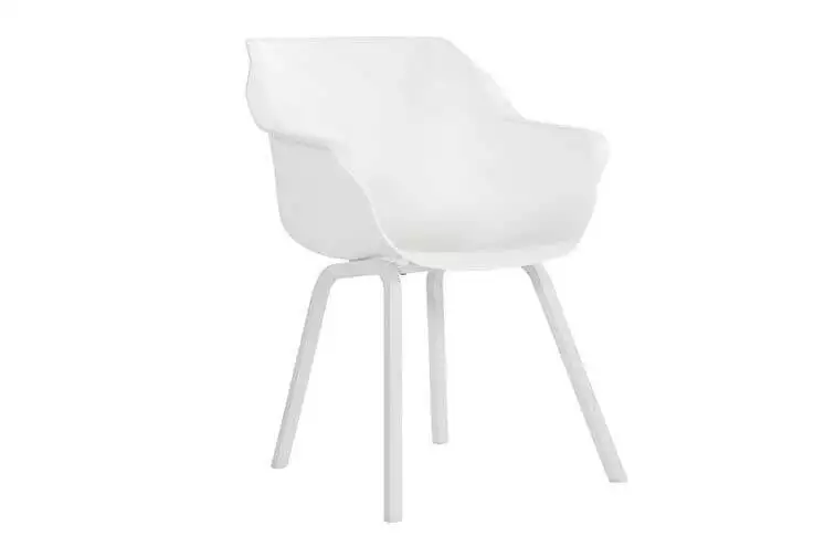 De Sophie Element arm stoel bestaat uit een aluminium onderstel met daarop een kuip van hoogwaardige kwaliteit kunststof. Dankzij het ontwerp, Curved Technology wordt er een extreem comfortabele zit ervaren. Niet alleen de zit is geweldig! De Sophie Element kenmerkt zich door haar strakke belijning. De aluminium poot is rechthoeking. U kunt uw eigen plaatje samenstellen door de stoelen te combineren met een bijpassende Sophie tafel (te verkrijgen in diverse kleuren). Ook mooi te combineren met een teak tafel.
