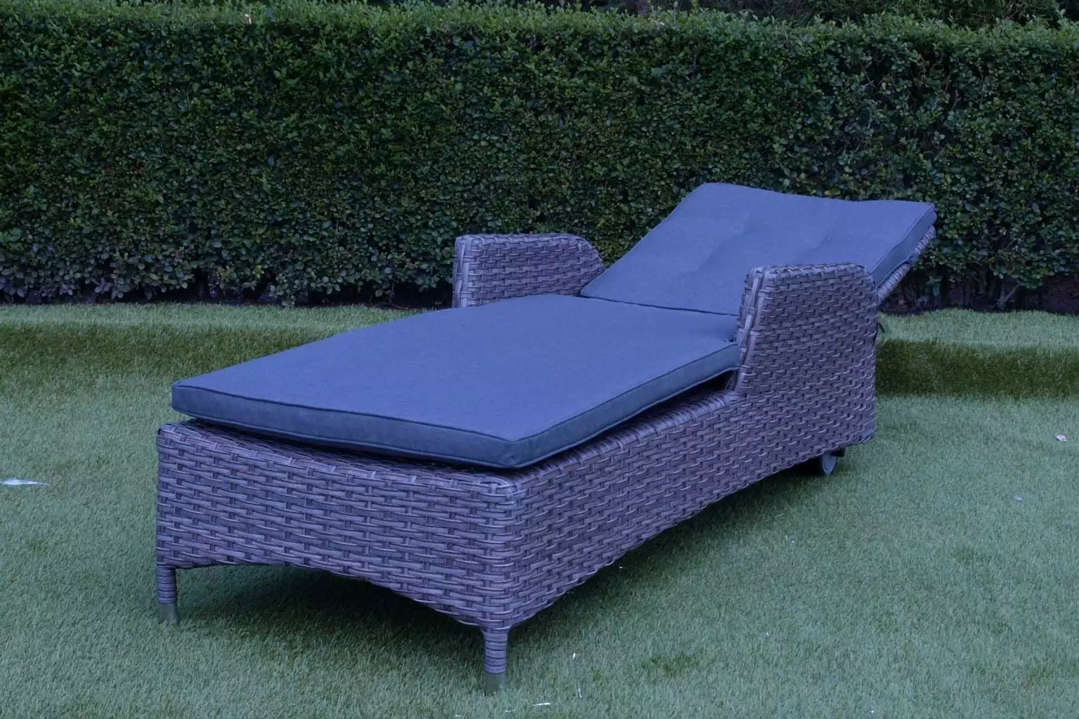 Dan is dit ligbed het ideale product. Het ligbed heeft een verstelbare rugleuning en is makkelijk verrijdbaar. Het ligbed heeft een aluminium frame met daaroverheen een zwarte wicker. Wordt geleverd inclusief kussen.