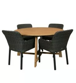 Deze mooie ronde tafel heeft een zeer goede kwaliteit teak. Deze teak is een old wash finisch, wat een zeer warme kleur geeft. Deze tafel is zeker mooi in combinatie met verstelbare of stapelstoelen. Bijvoorbeeld is het heel mooi in combinatie met een royale wicker stoel. Hoogte 78cm.