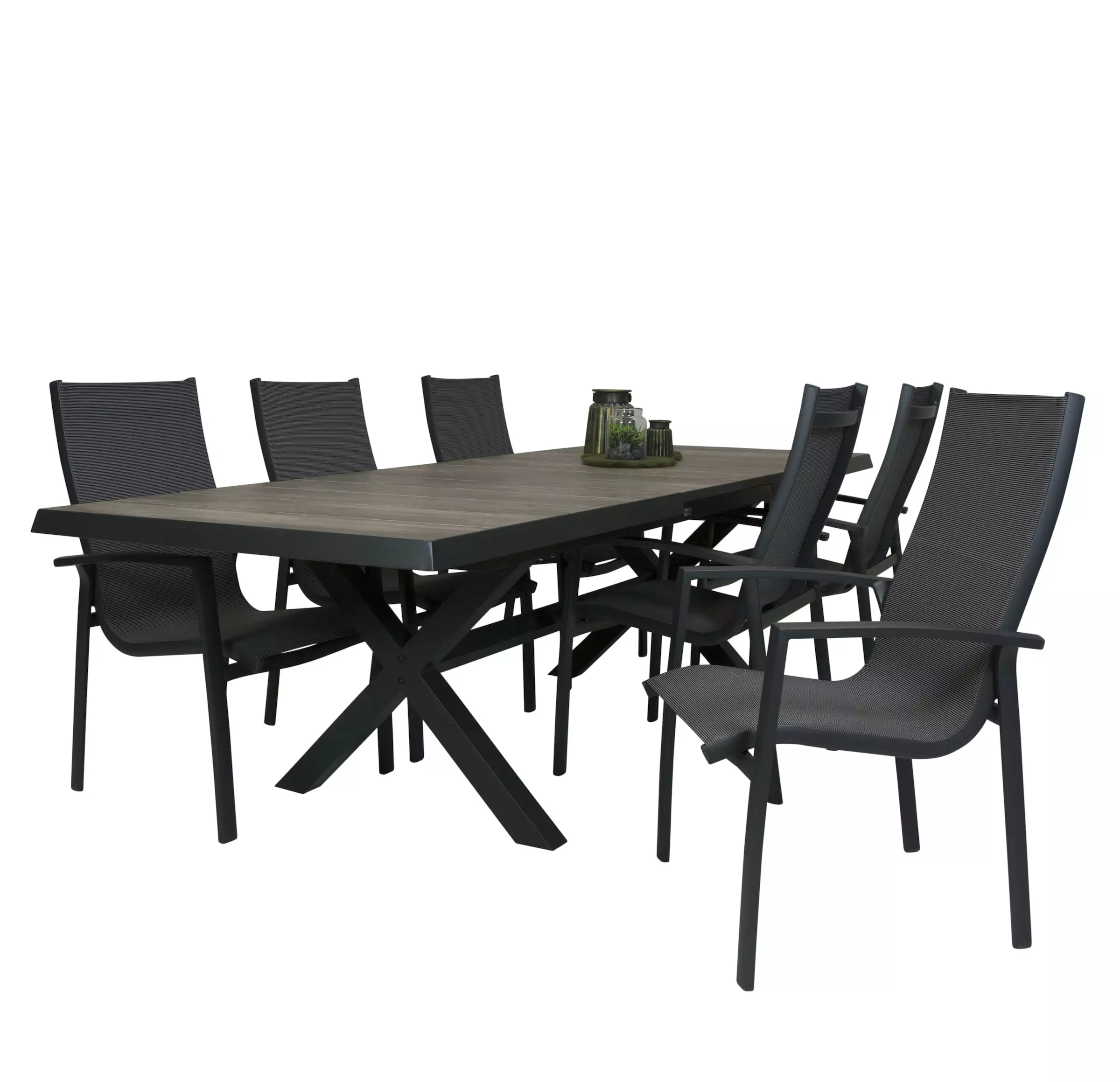 Deze zeer mooi en strakke uitschuiftafel Ottowa. door zijn mooie kruispoot en uniek uitschuif systeem. Dat met 1 persoon bediend kan worden. kun je de tafel in een hand omdraai uitschuiven naar 265 cm. Het frame is van onderhoud aluminium dat royal grey mat. het blad is van ceramische tegels met een hout kleur die met zijn grijs met aarde tinten makkelijk laat combineren.
