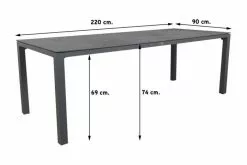 De stijlvolle en robuuste tuintafel Ambassador heeft een frost grey kleurig RVS onderstel. Hij heeft een teakhouten blad van 240×100 cm.
